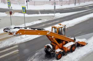 После выпадения снега работники продолжают расчищать территории в районе Бекасово